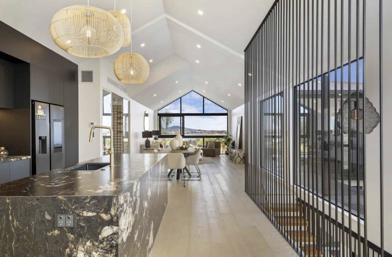 • Architectural Design Soaring ceilings, clean contemporary lines, and full-height glazing create a seamless connection between indoor and outdoor living.