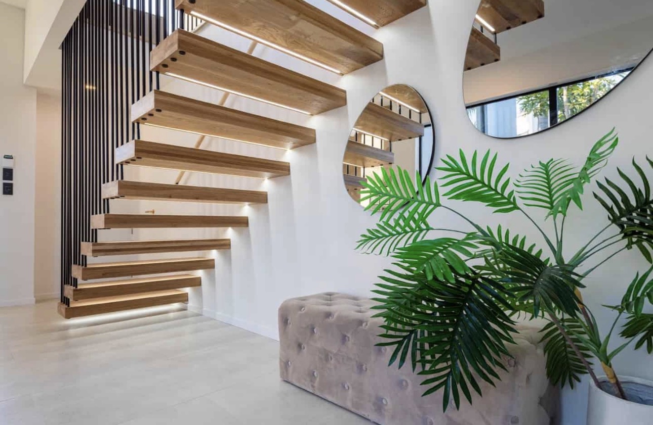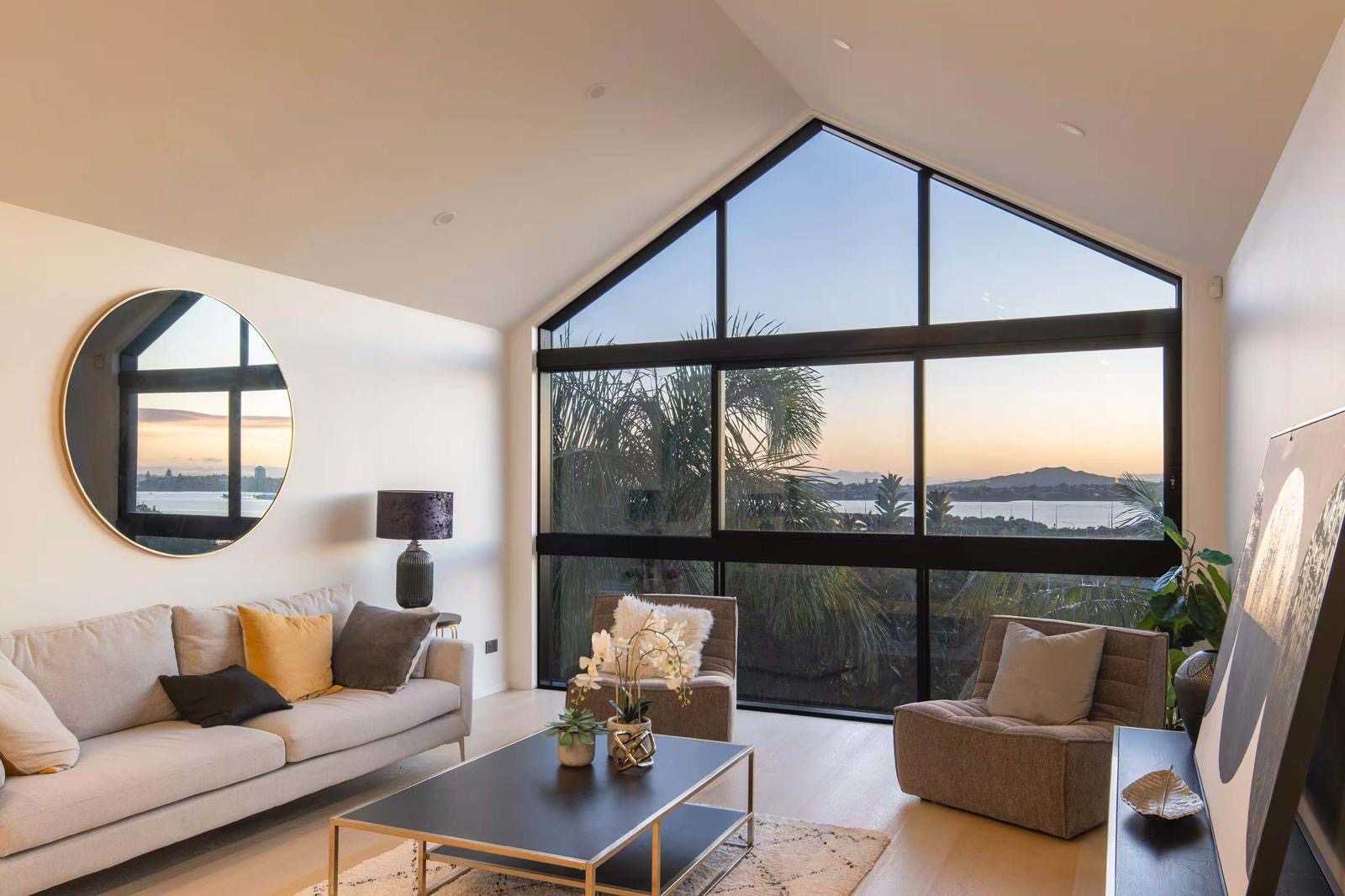 Framed by palms and striking architectural gables, its bold exterior gives way to light-filled interiors designed for effortless sophistication, enhanced by sweeping harbour and city views.