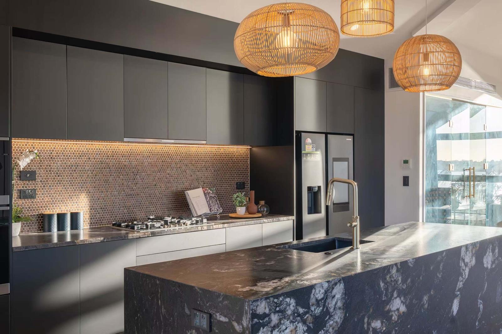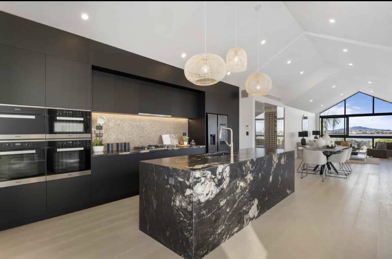• Gourmet Kitchen A true centrepiece with an Italian marble island, premium integrated Miele appliances including dual ovens, steam oven, and microwave, plus high-end fittings throughout.