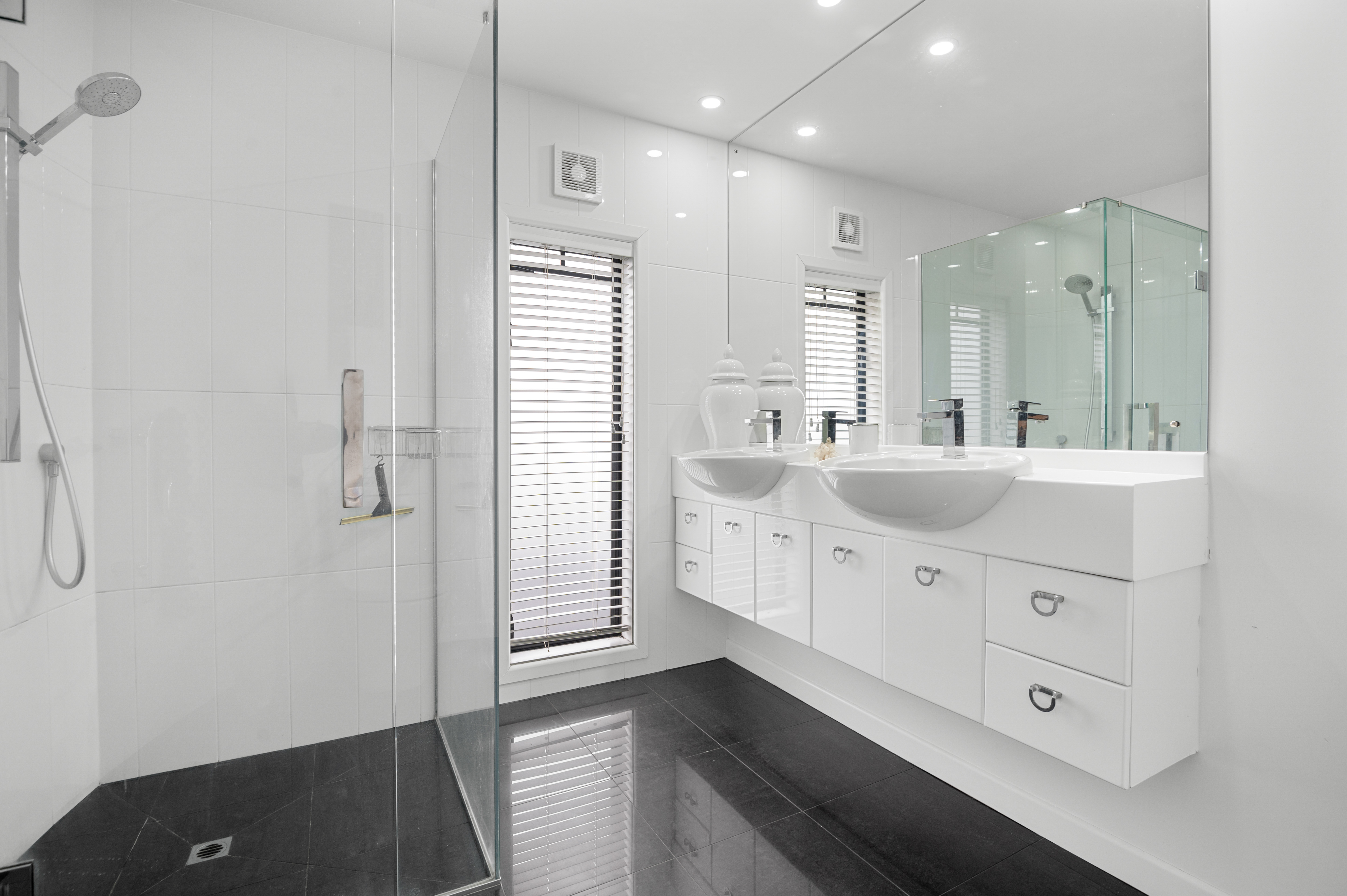 Two double bedrooms and casual family lounge flank the downstairs foyer with a seamless flow to the patio and BBQ area. The family bathroom features corner spa bath, separate shower and vanity. On the penthouse floor a mezzanine study sits adjacent to master bedroom with walk in wardrobe, substantial day room and an ensuite with tiled floor, frameless glass shower and dual basin vanity. There are vast amounts of storage dotted throughout the house.