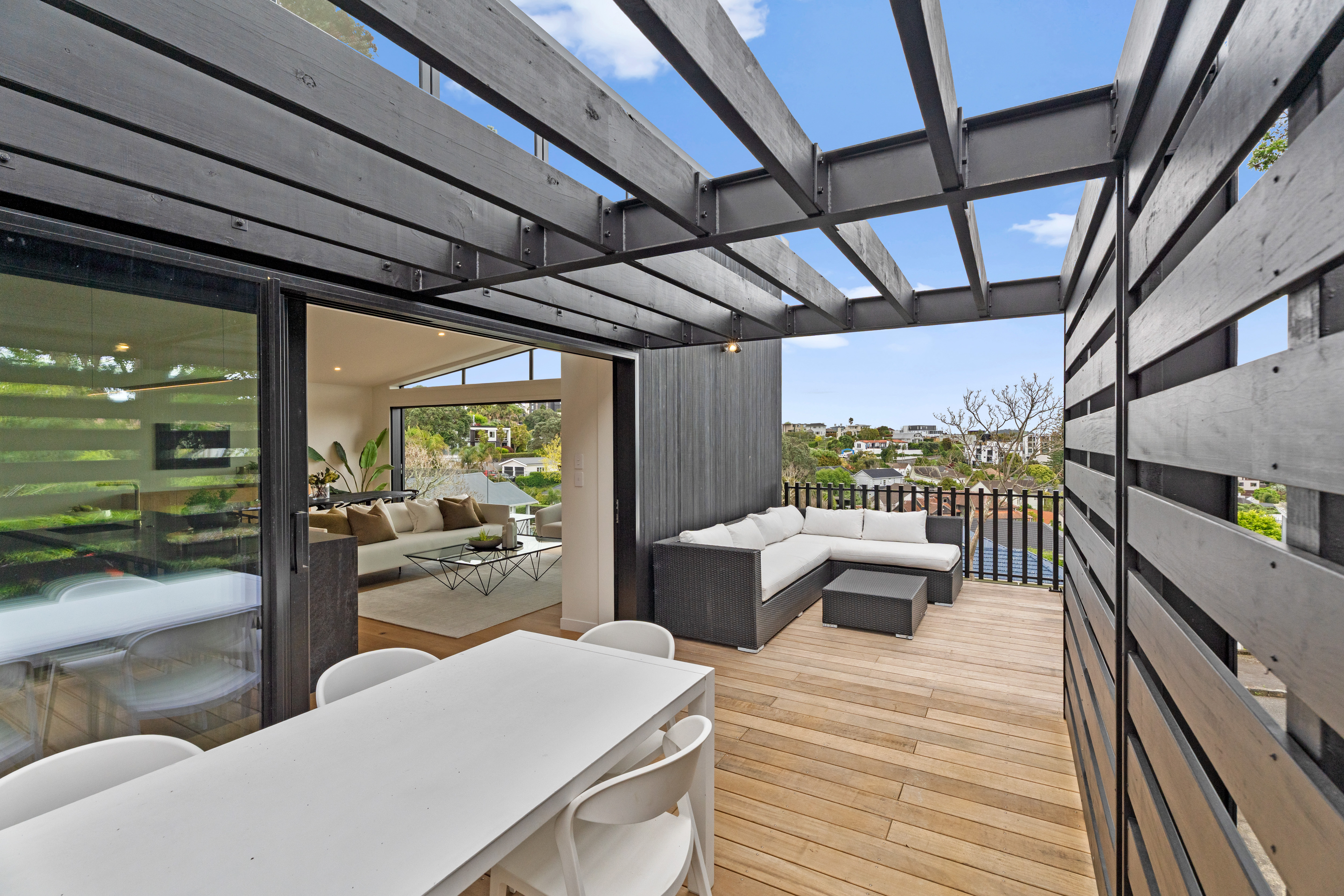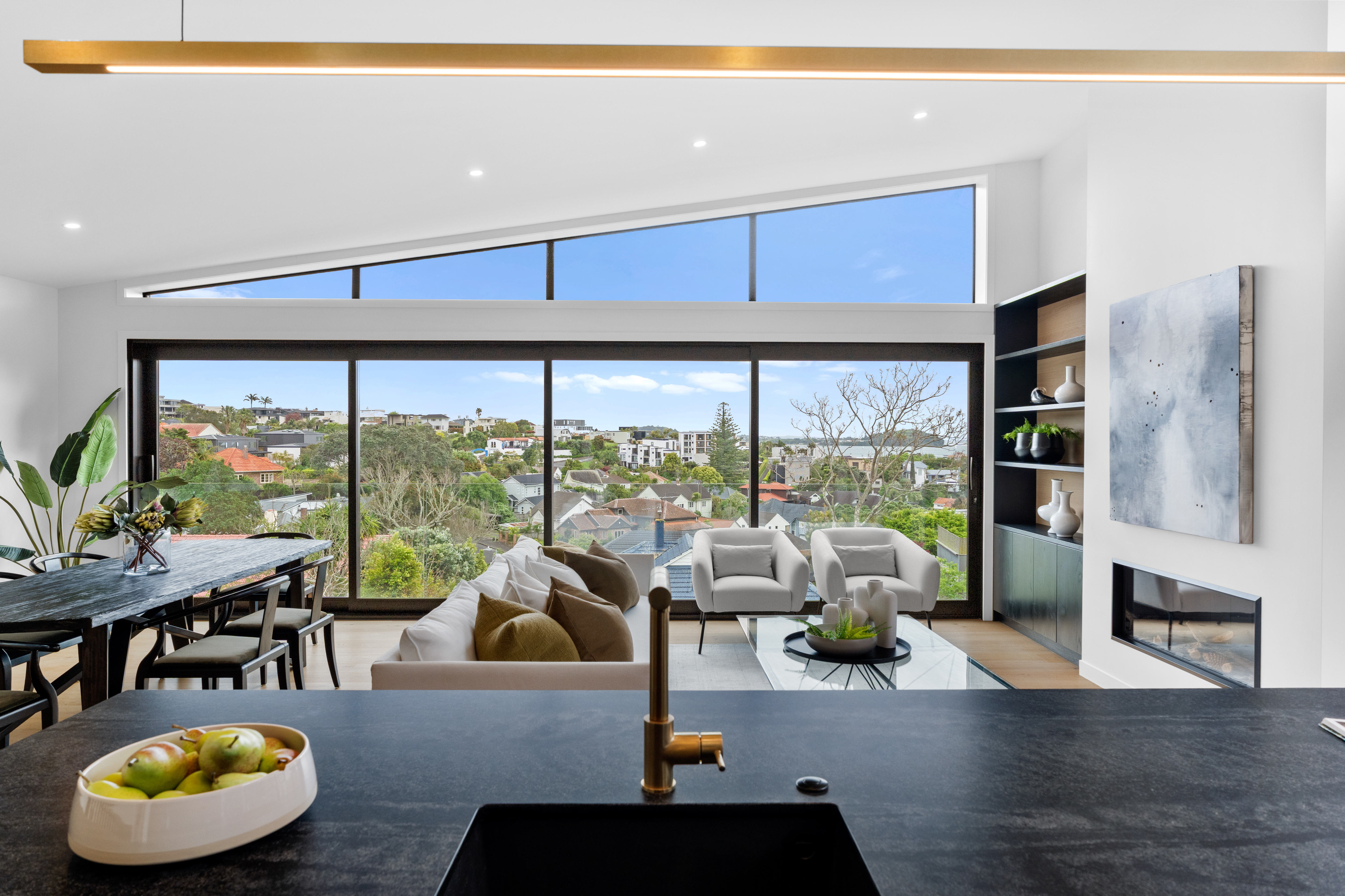 An impressive newcomer on Orakei's upper slopes, this bold, linear four bedroom residence has just been completed. Nestled on a 347 sqm (approx.) freehold site, the elevated north facing property is oriented to appreciate wide sea views across to North Head's iconic peninsula. Exemplifying the paradox of simplicity with uncompromising specifications, this is a home for discerning families and busy executives.