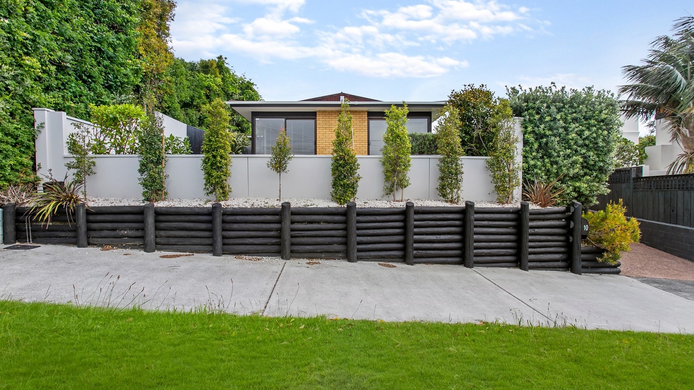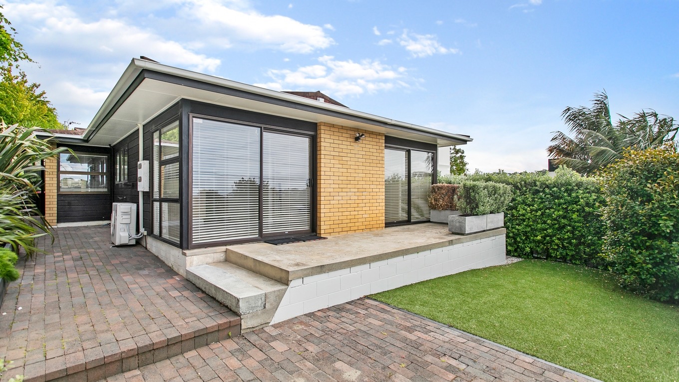 It with street frontage orientation has a 133 sqm (approx.) floor plan with sparkling glimpses through palm tree fronds to Hobson Bay. Spacious open plan living basks in fabulous northern sun while ranch sliders connect to a patio bordered by secluded lawns and sub-tropical gardens. The timber floored dining area has a cosy heat pump and flanks the modern kitchen complete with ample cabinetry and stainless-steel appliances. The master bedroom has a fully tiled Jack and Jill ensuite while a second equally chic bathroom sits alongside the oversize laundry/utility room.