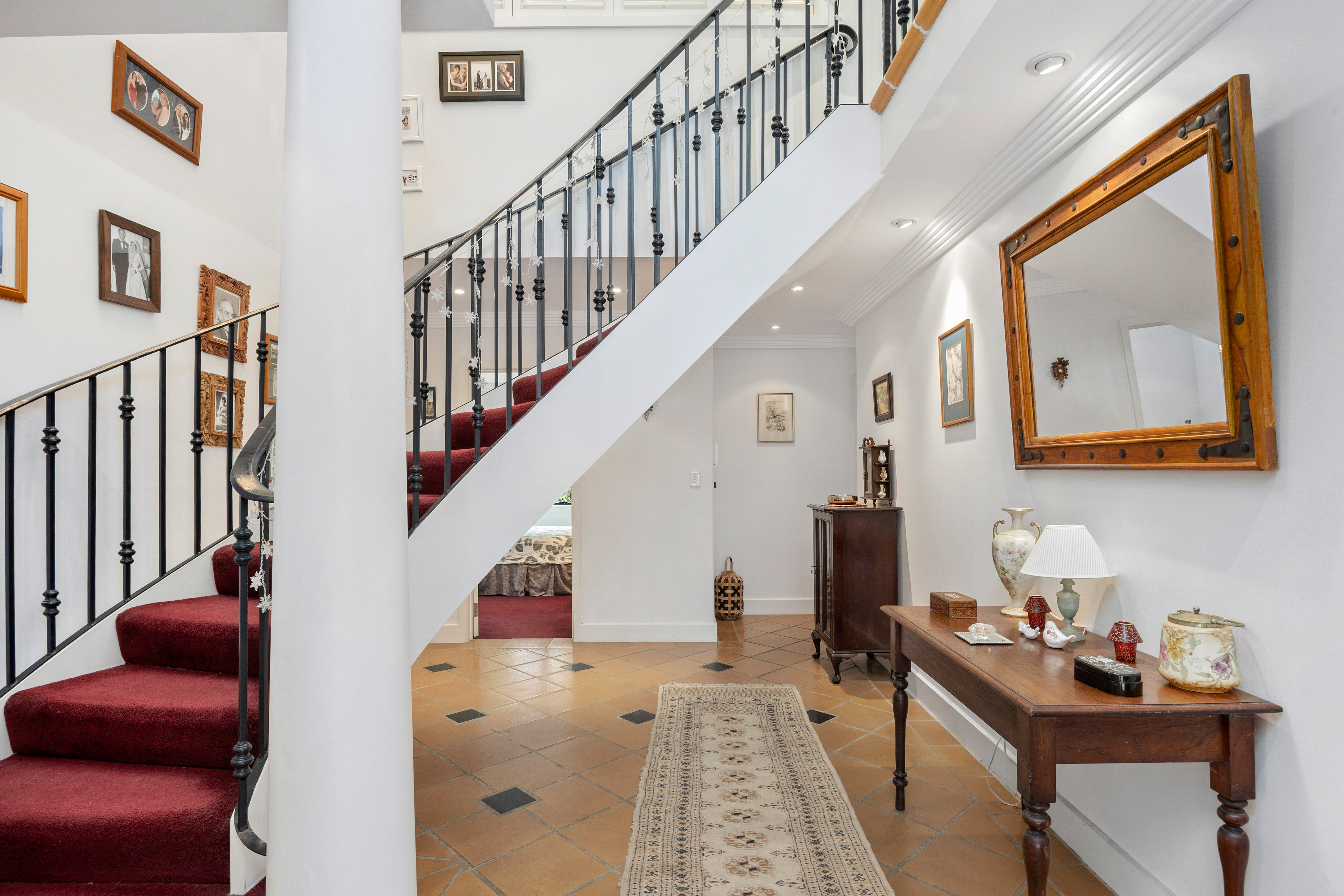 The upper level is truly the heart of the home, showcasing expansive open-plan living and dining spaces anchored by a designer, one-of-a-kind kitchen - ideal for both family living and effortless entertaining - perfectly complemented by a powder room for everyday convenience. Natural light floods the living areas, while a balcony overlooks the landscaped Mediterranean-style courtyard and tranquil fishpond below. The master suite is privately positioned and features a walk-in wardrobe along with a luxurious tiled ensuite complete with a shower and spa bath.