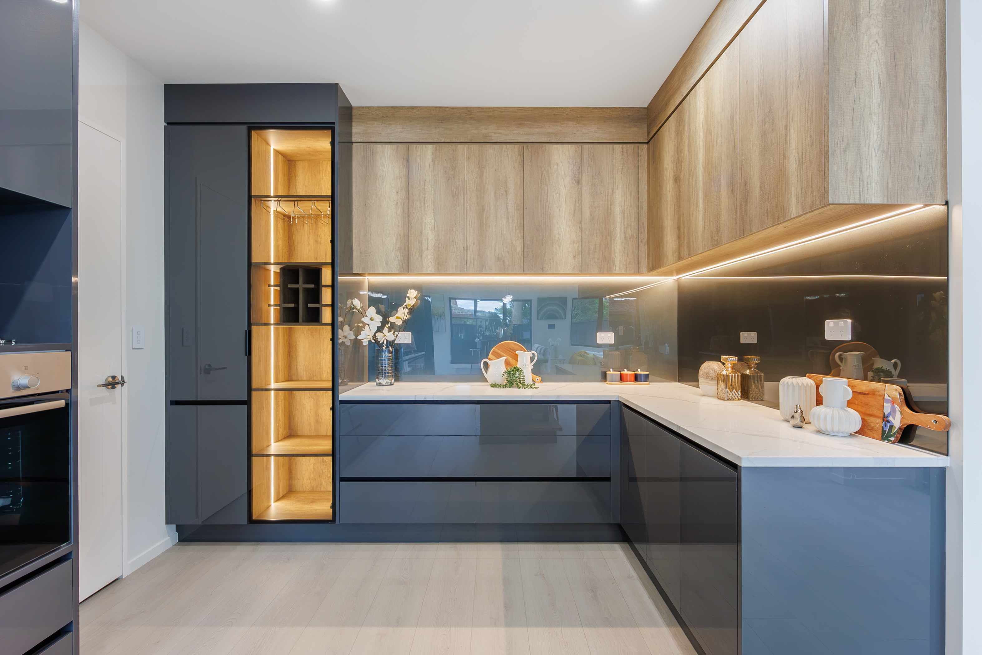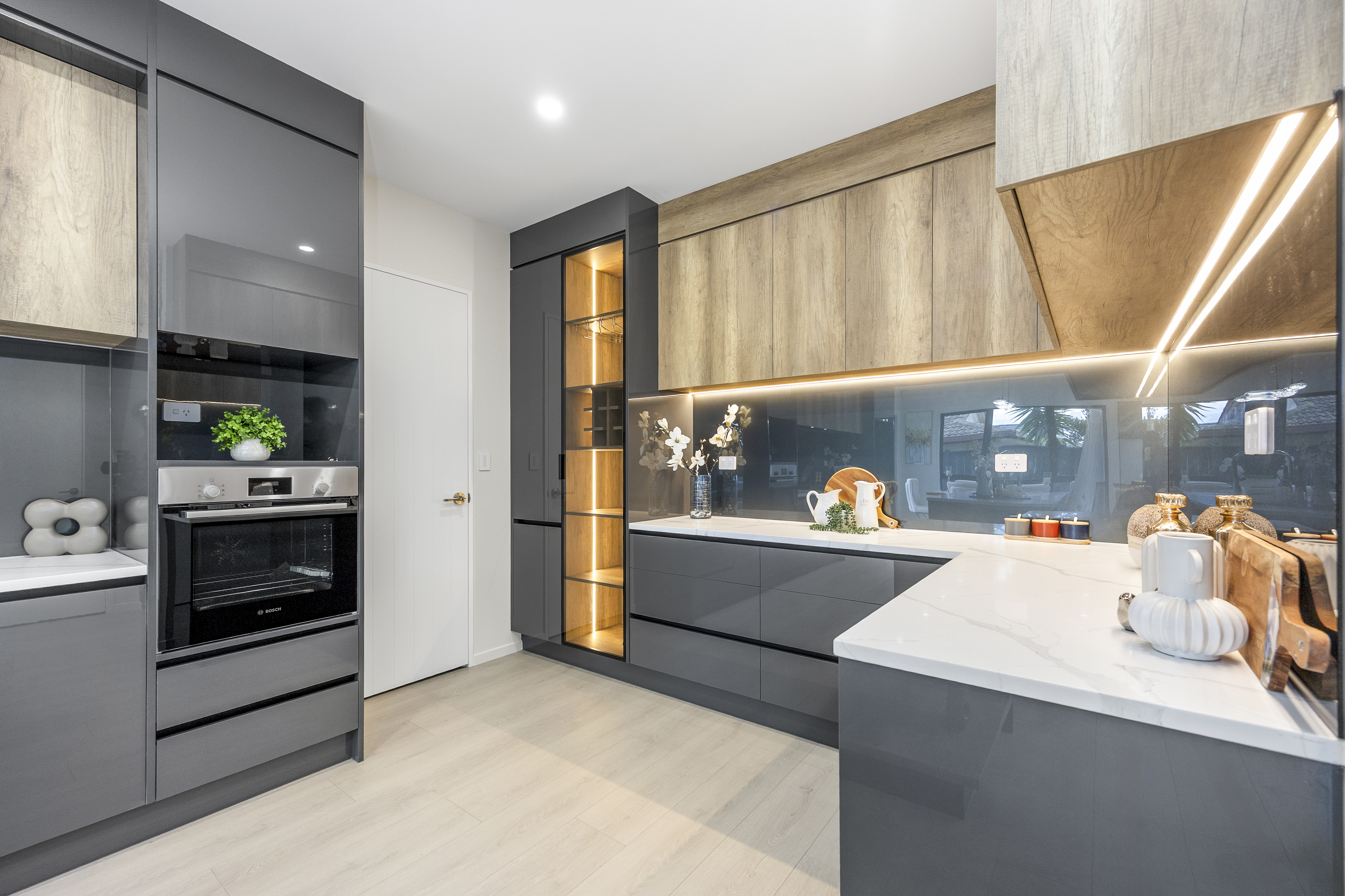 The 280 sqm (approx.) double-glazed two-level residence prioritises high-specification fixtures and fittings and a considered interior palette in neutral hues. Facing north to maximise the sun, the well-lit open plan lounge and dining areas anchored by light-toned timber laminate flooring imbue this domain with a crisp, chic ambiance. A ravishing designer kitchen gleams with the latest Bosch appliances and sleek timber and high-gloss lacquer cabinetry while a stone topped waterfall island is an engaging spot to rendezvous with friends over a glass of wine. Daily life flows with ease as multiple sliders allow access out onto a sizable alfresco deck and perimeter garden pathways. The separate media lounge is a multipurpose retreat as it also serves the adjacent guest/grandparents' quarters - a double bedroom with tiled ensuite bathroom.