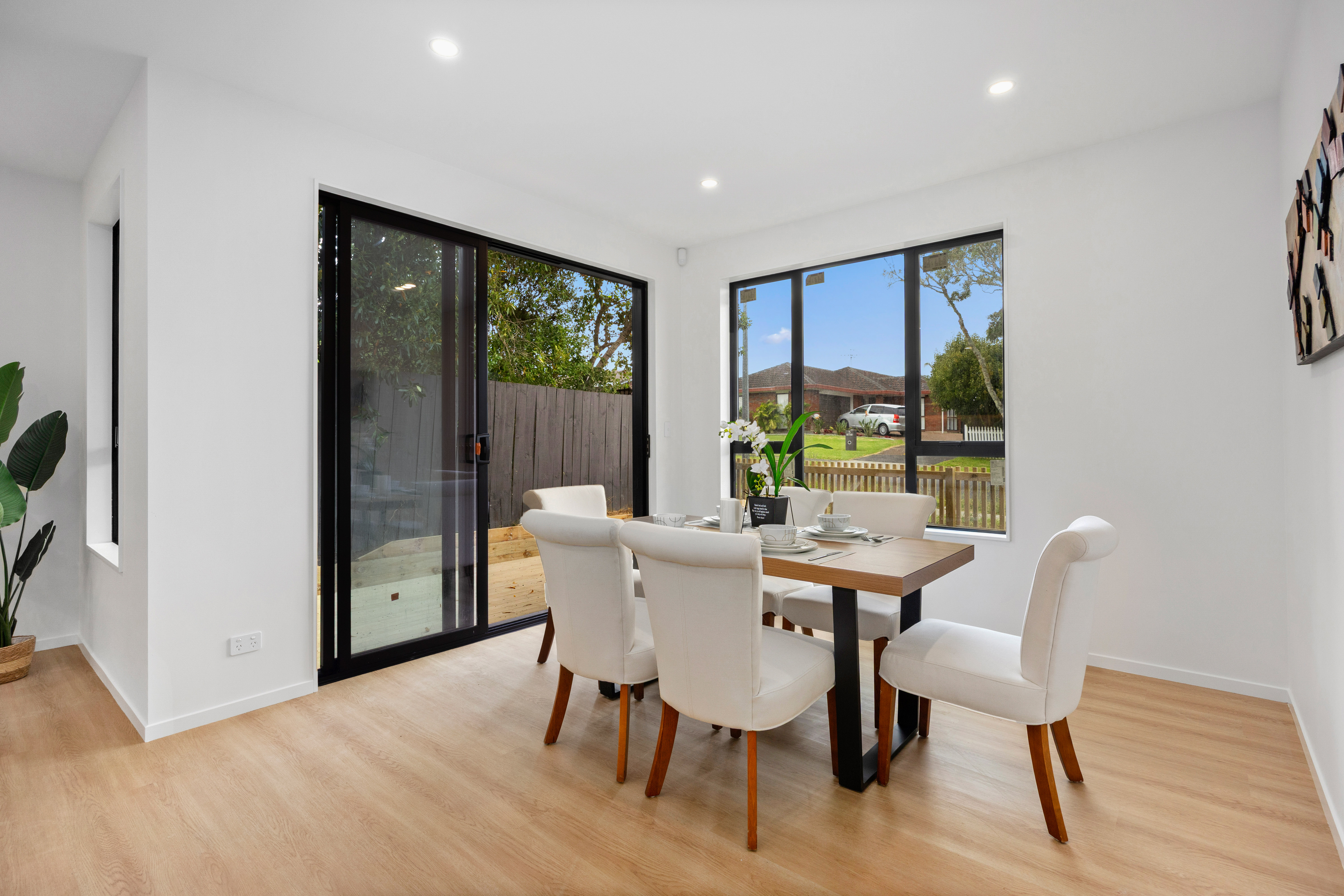 Offers a spacious layout ideal for larger or multi-generational families, featuring 5 bedrooms and 3.5 bathrooms, including 2 master bedrooms with private ensuites. A downstairs bedroom with its own ensuite provides a perfect space for elderly family members or guests. The home includes a comfortable living area with a fireplace and a modern open-plan kitchen and dining area equipped with quality Bosch appliances. The second floor also enjoys lovely mountain views, and a single internal access garage adds convenience. The homes are located close to Lloyd Elsmore Park, the Lloyd Elsmore Park Pool and Leisure Centre, and the shops and eateries at Highland Park. Zoned for Wakaaranga School, Farm Cove Intermediate, and Pakuranga College.