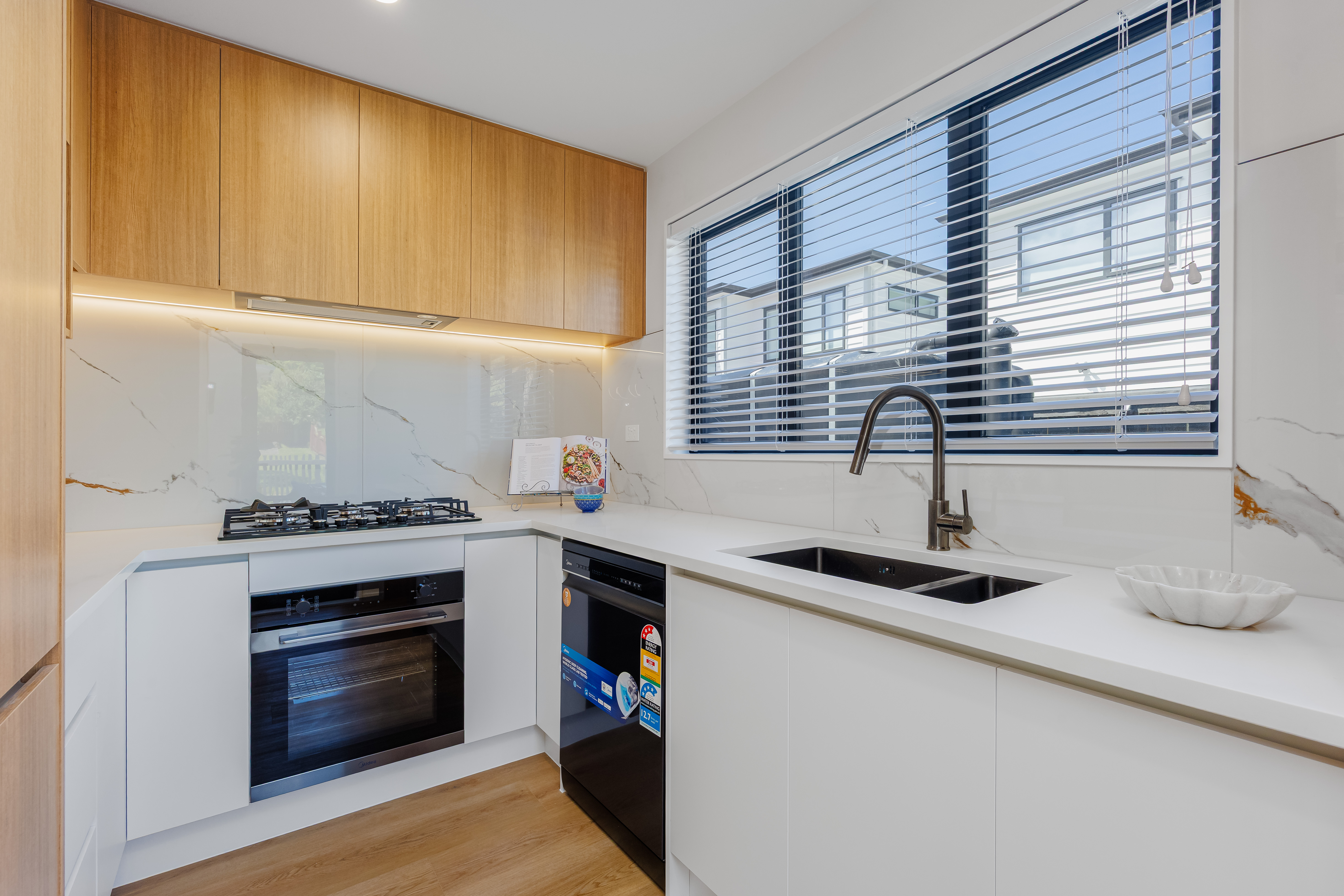 * Spacious open-plan living with designer kitchen and quality modern appliances.