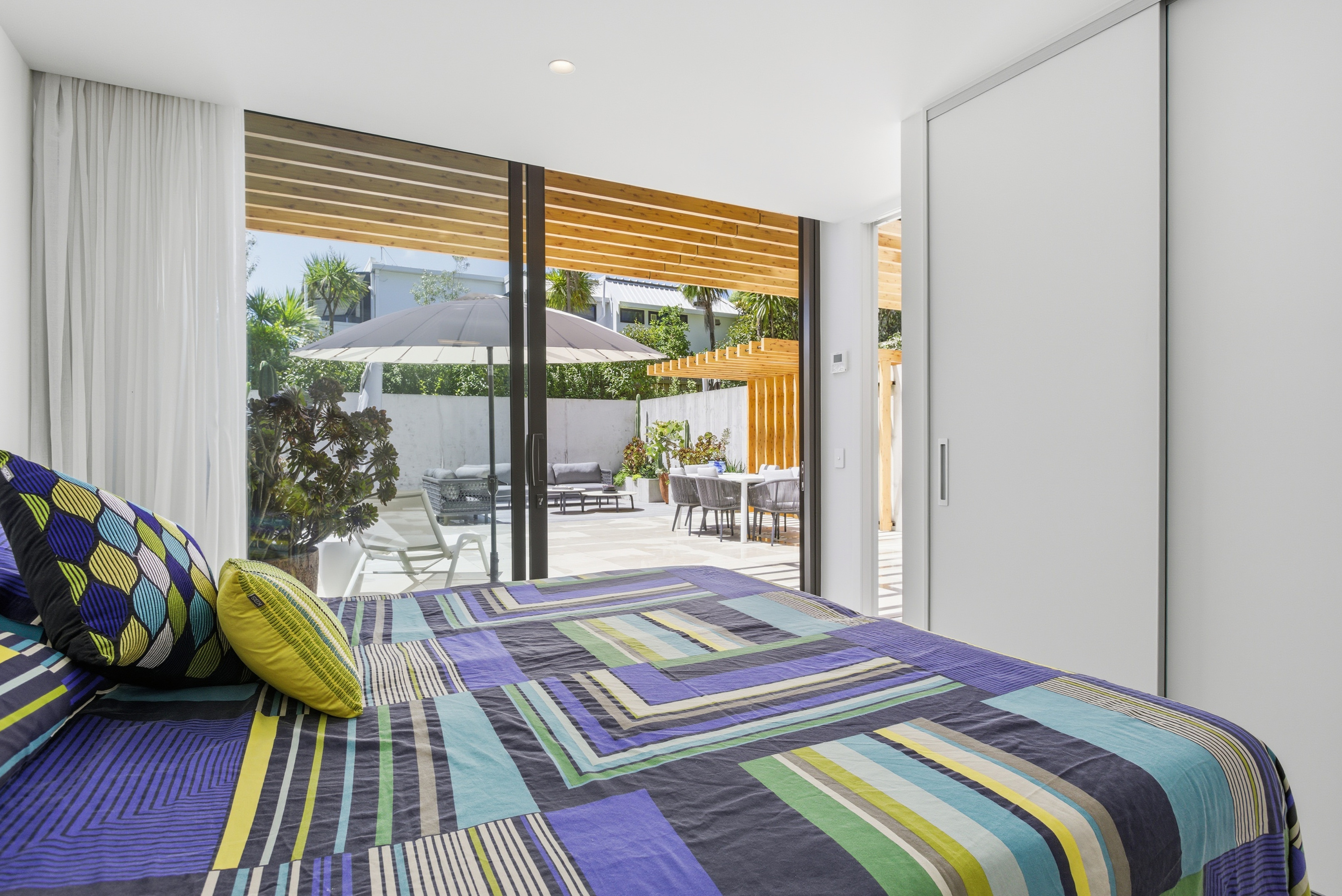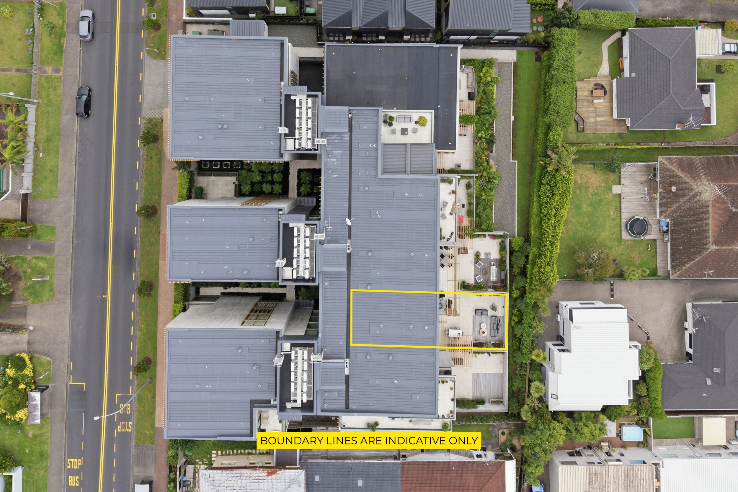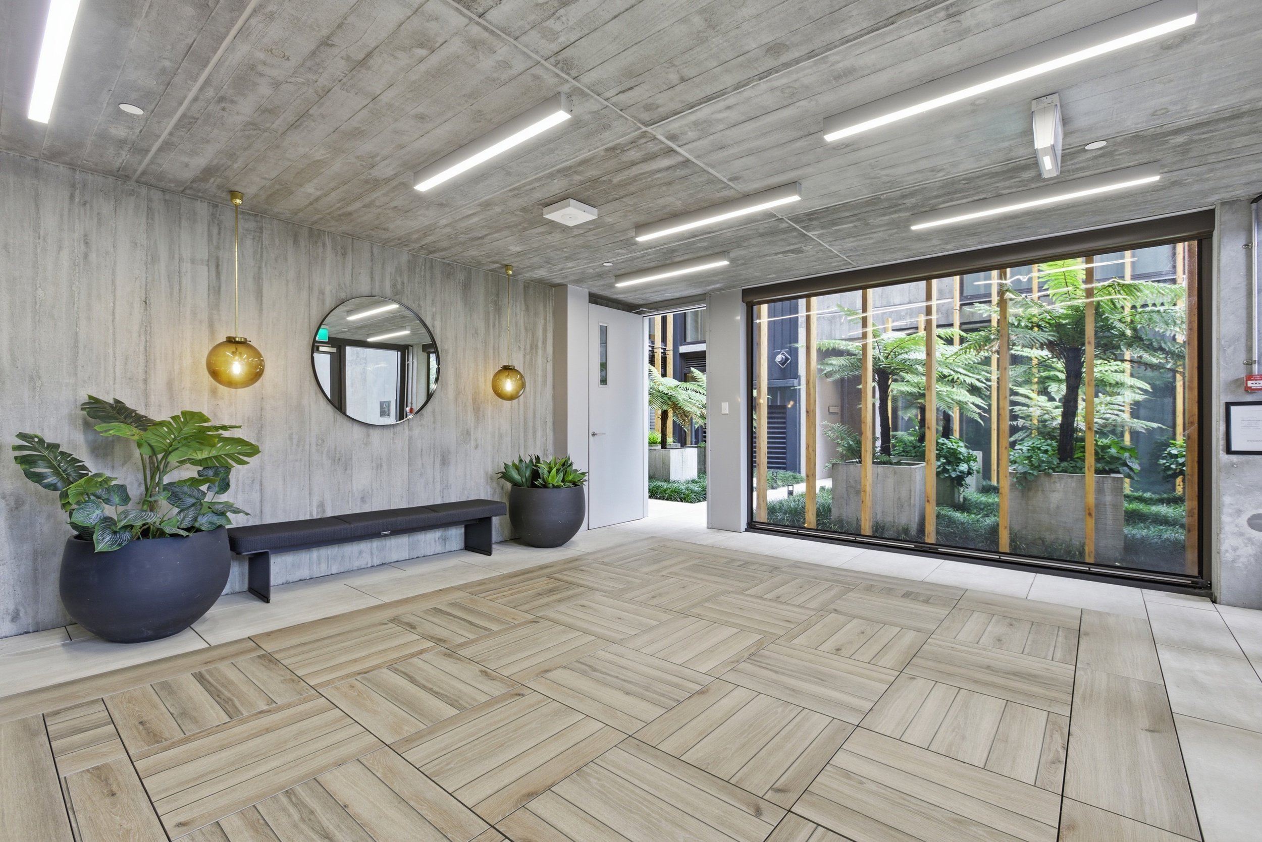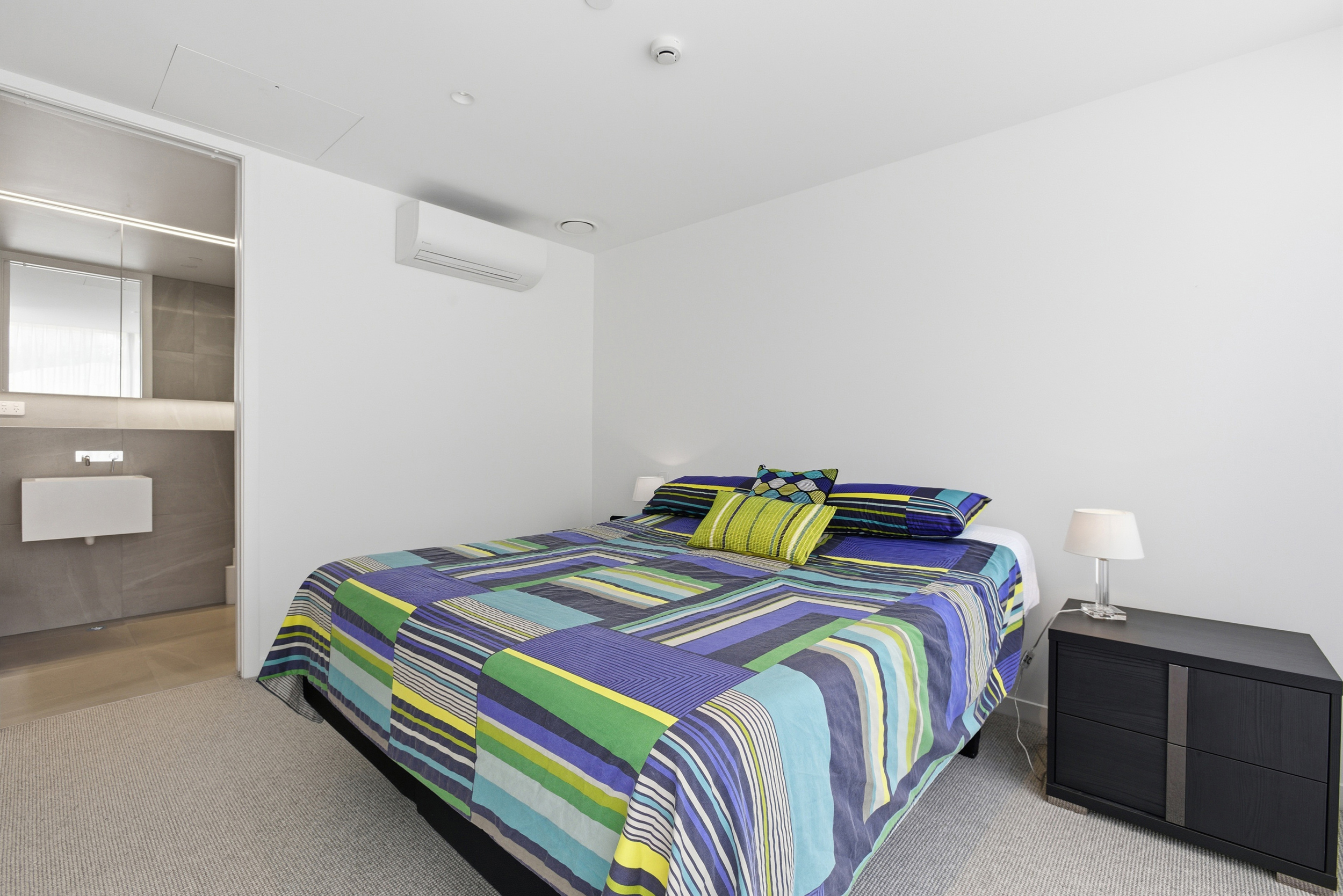 Offering approximately 92m² (more or less) of refined interiors with blonded European oak floors, Miele appliances with integrated fridge/freezer, Italian stone benchtops and an impressive 2.7m stud height. Floor-to-ceiling glazing enhances the light-filled open-plan living and connects seamlessly to the outdoors. Two double bedrooms include a master with an ensuite.