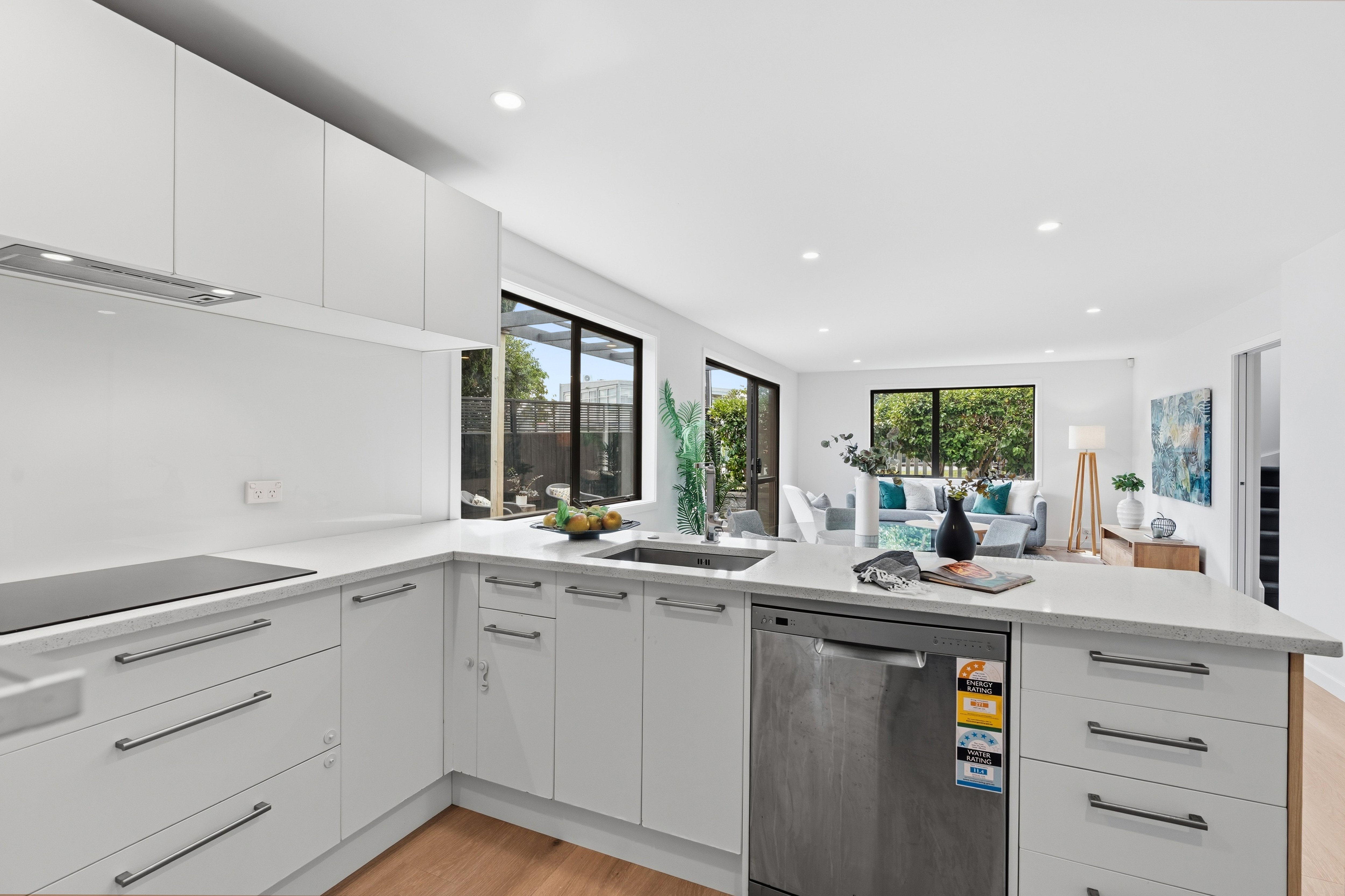 The 165sqm (approximately) residence has just been repainted inside creating a fresh, light-filled ambiance. Central heating/cooling on the upper floor enhances year-round comfort while timber laminate flooring in high traffic areas minimises maintenance. Open plan living has double doors connecting to sheltered, west facing courtyard with pergola covered deck and adjoining patio. Spread out, chill out, and dine alfresco or laze on sun loungers while a nearby Astro turf strip has a golf green for practice putts. The stylish kitchen follows the same light timber theme with copious cabinetry and stone topped benches setting the scene for modern appliances. A downstairs powder room is a handy inclusion while upstairs two tiled bathrooms have chrome fittings with master ensuite aligned with a spacious walk-in wardrobe. Double bedrooms are well appointed with ample closet space and there's a landing nook for a study desk. Plentiful storage throughout the home includes internal access double garaging integrating the laundry.