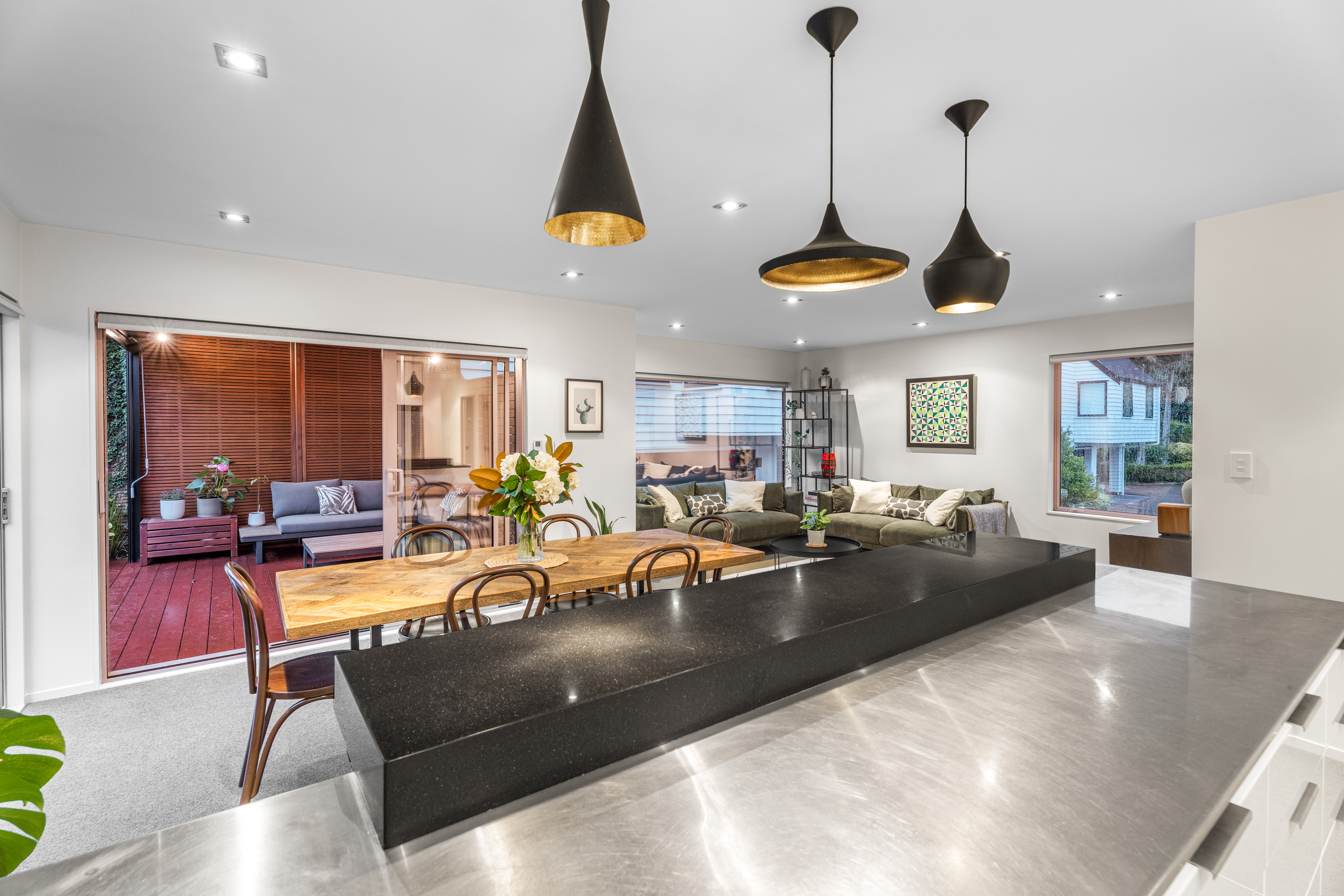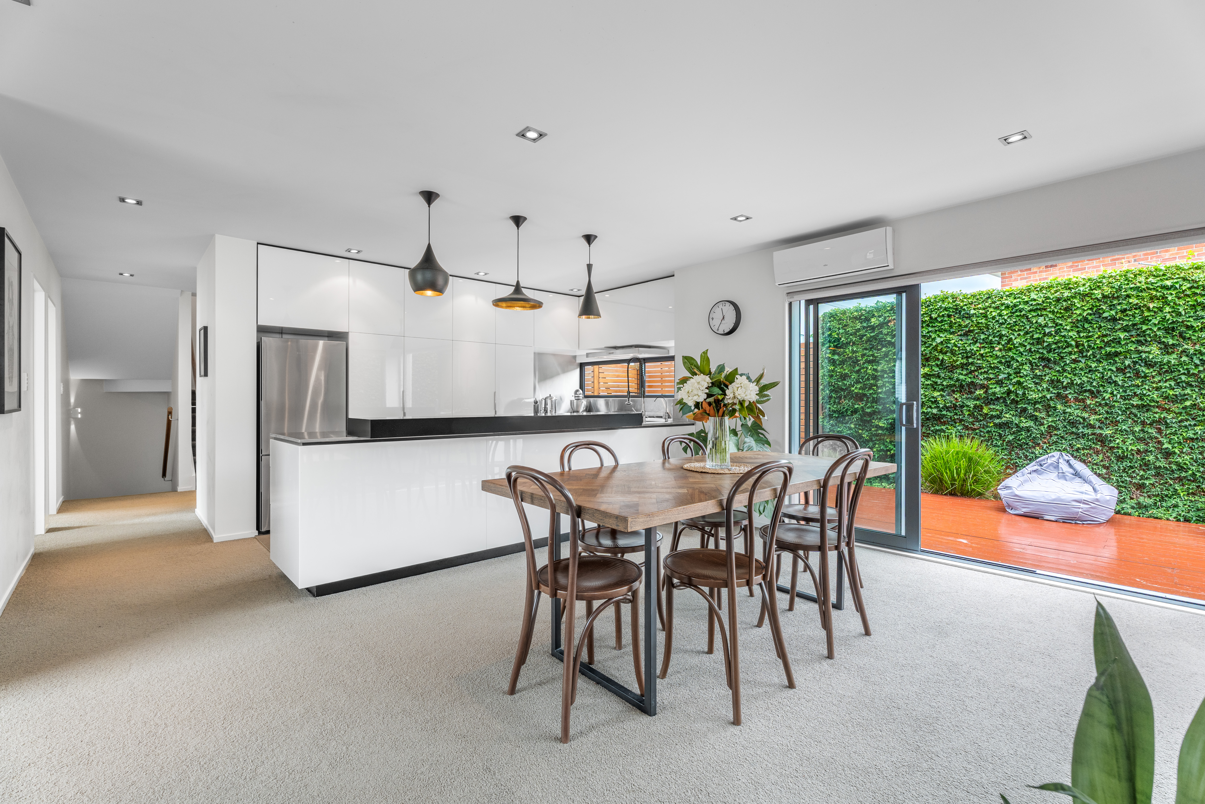 Spanning three levels, the layout provides generous living zones across two floors, complemented by three bedrooms and two bathrooms, with flexibility to create another bedroom on the top level if desired. Exceptional indoor-outdoor flow defines the home, with premium finishes throughout and a level of craftsmanship that sets it apart. From statement Tom Dixon lighting to the beautifully appointed designer kitchen, every detail has been considered.