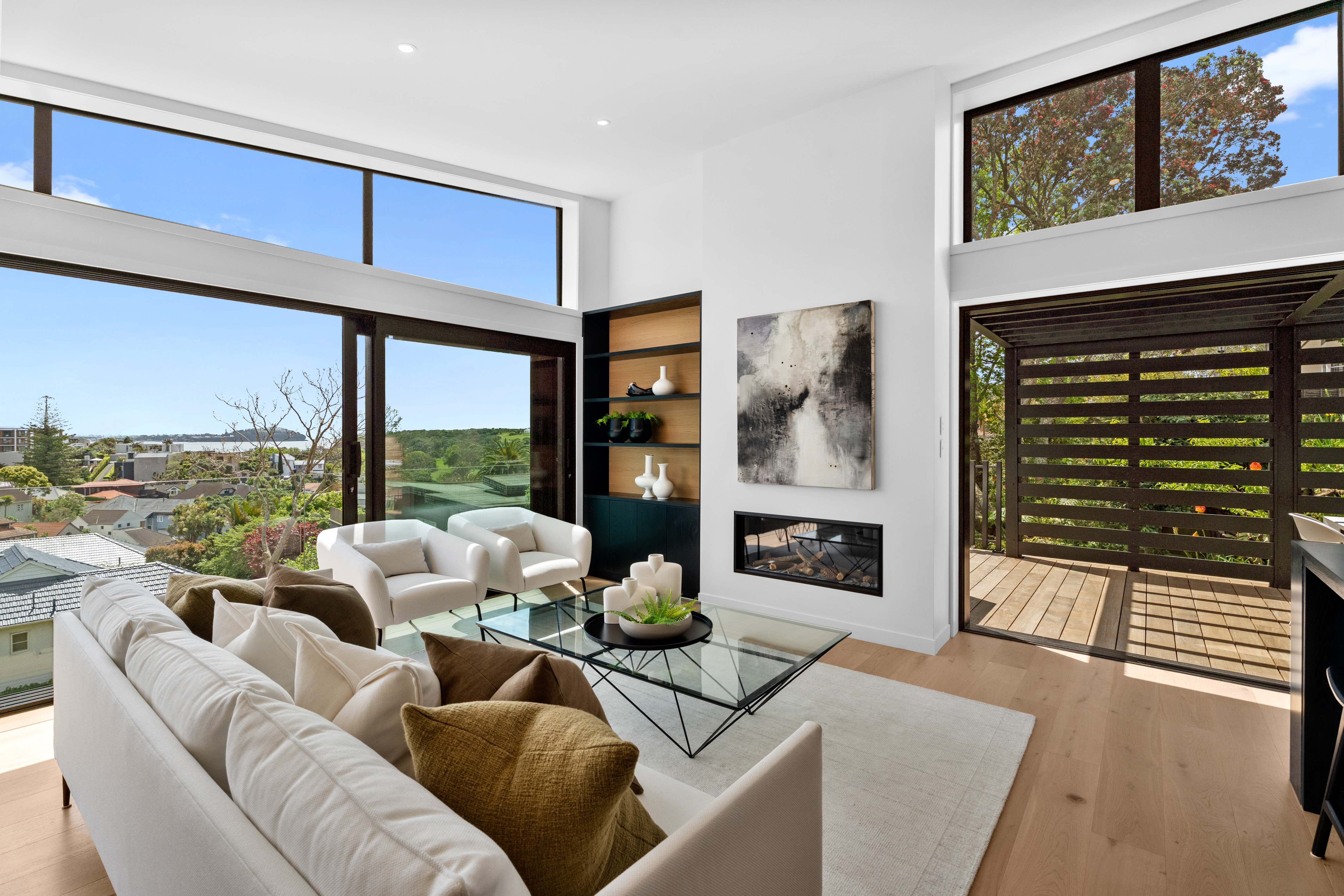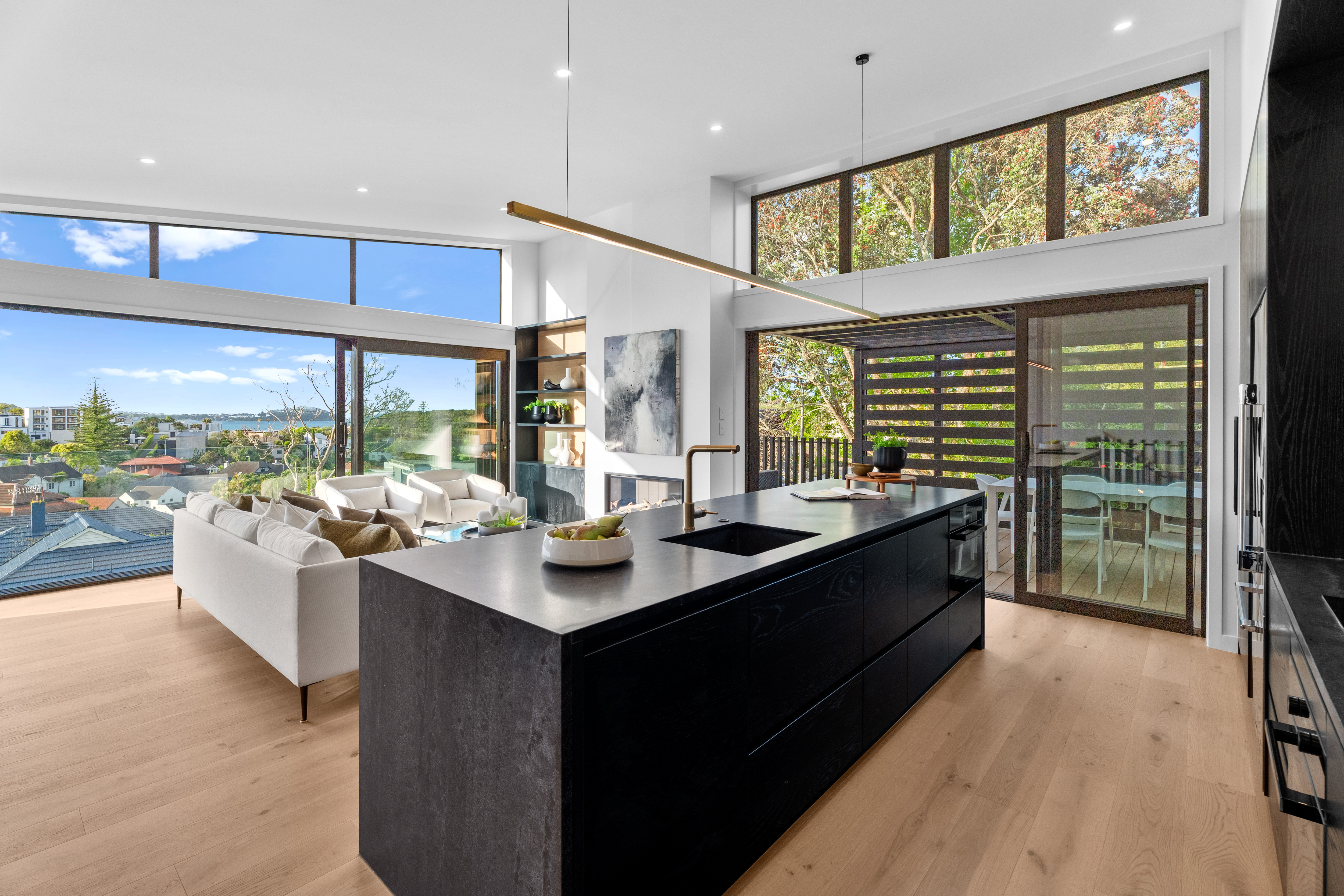 An impressive newcomer on Orakei's upper slopes, this bold, linear four bedroom residence has just been completed. Nestled on a 347 sqm (approx.) freehold site, the elevated north facing property is oriented to appreciate wide sea views across to North Head's iconic peninsula. Exemplifying the paradox of simplicity with uncompromising specifications, this is a home for discerning families and busy executives.