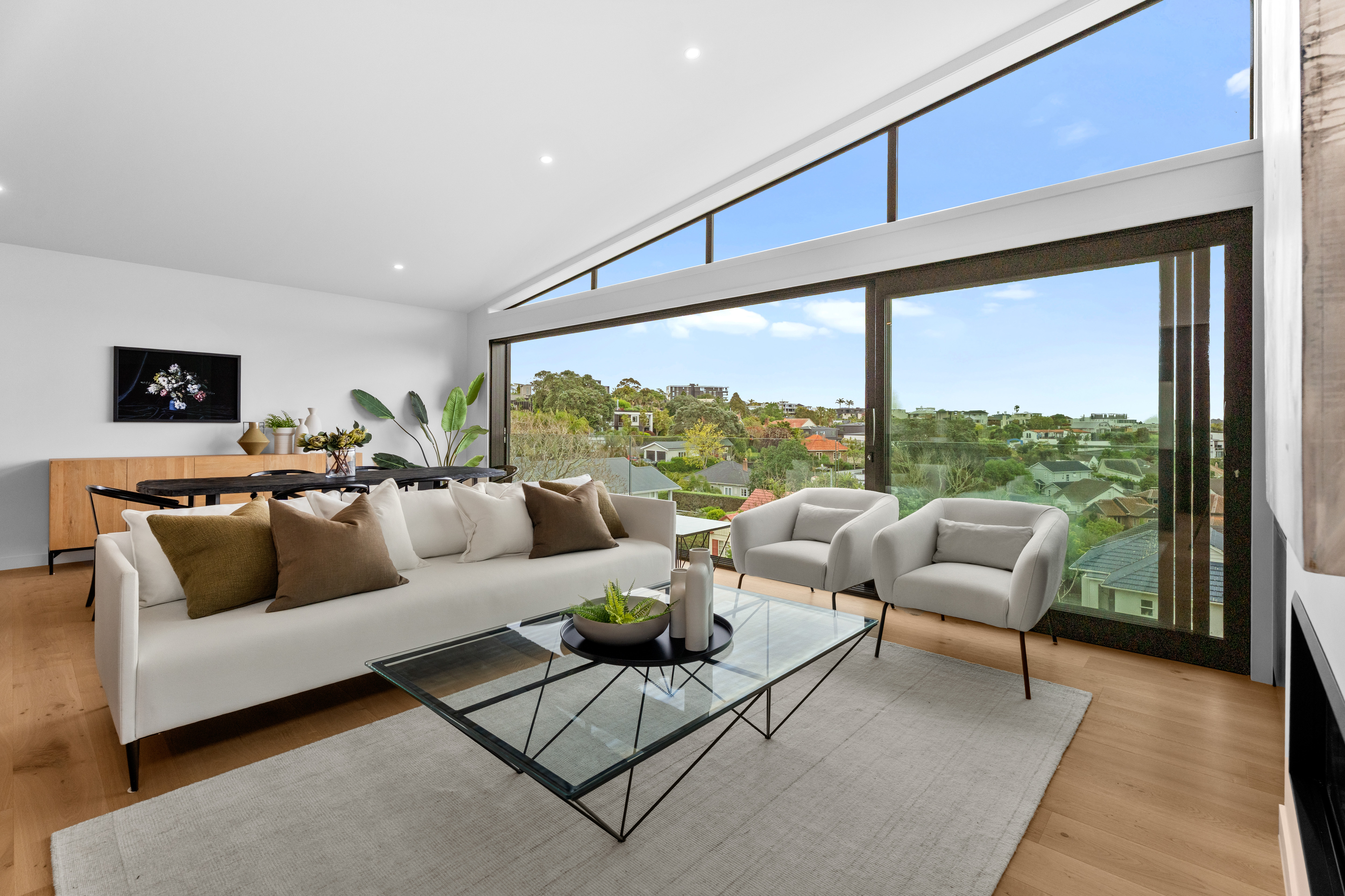 Advancing over split levels, the 229 sqm (approx.) home harnesses attractive timber flooring in the foyer and entertainment areas with solid open stair risers connecting the lower and central floors. The central core living space with soaring raking ceilings provides an inviting open plan layout to enjoy, complete with built in gas fireplace and four dual-opening sliders to maximise the captivating vistas.