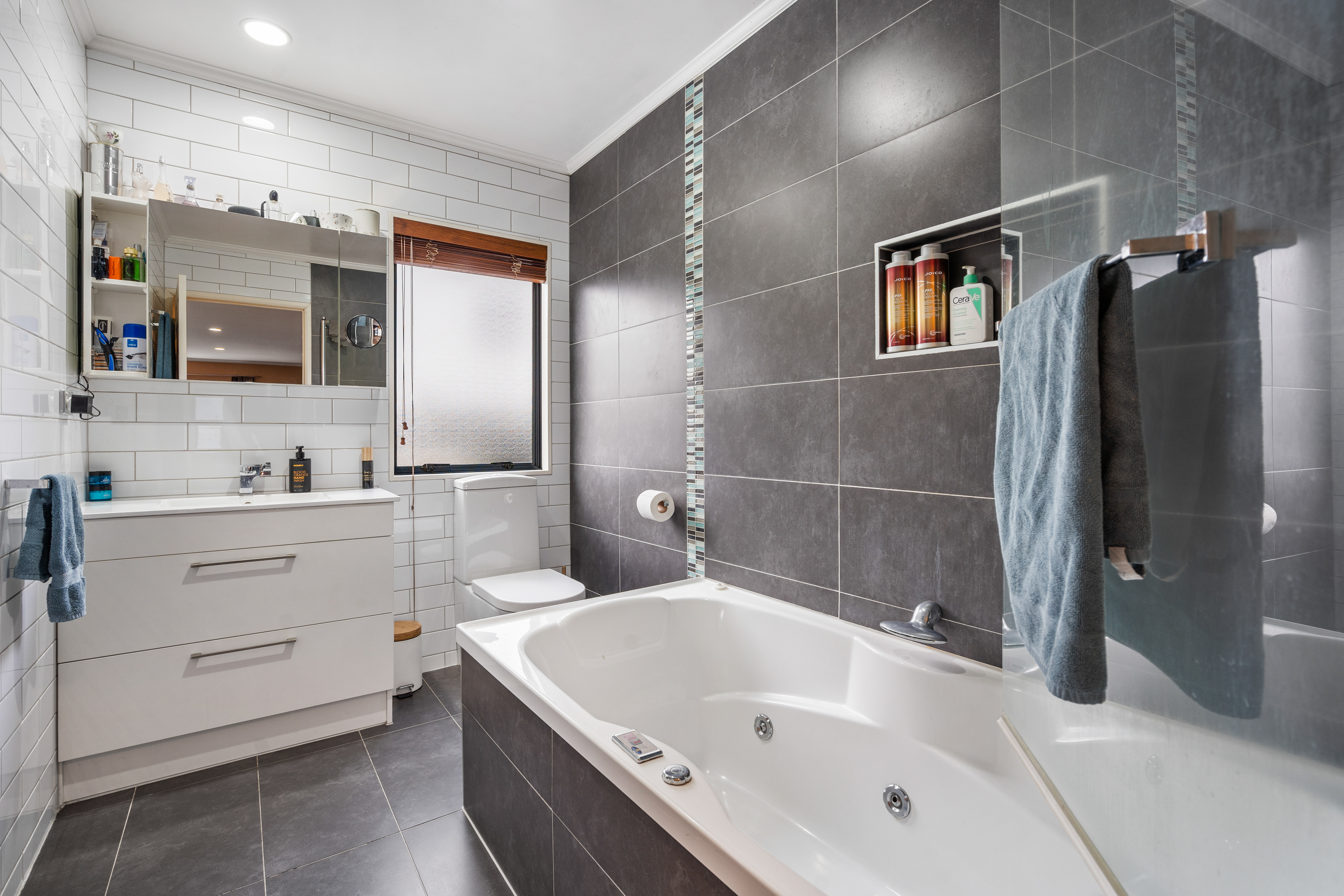 An undeniable opportunity in an upmarket neighbourhood with scope to transform and add value to this four bedroom home. The two-storey layout covers 198 sqm (approx.) of accommodation. At ground floor entry a stairway ascends to core living areas on the upper floor where a spacious, carpeted lounge with wall mounted heat pump has direct access to a Juliet balcony. Durable laminate flooring defines open plan dining with back deck access. The spa pool (included), substantial barbecue/food prep area and plenty of seating room invites open air entertaining while the cobalt kitchen has breakfast bar, loads of shelving and cabinetry integrating appliances.