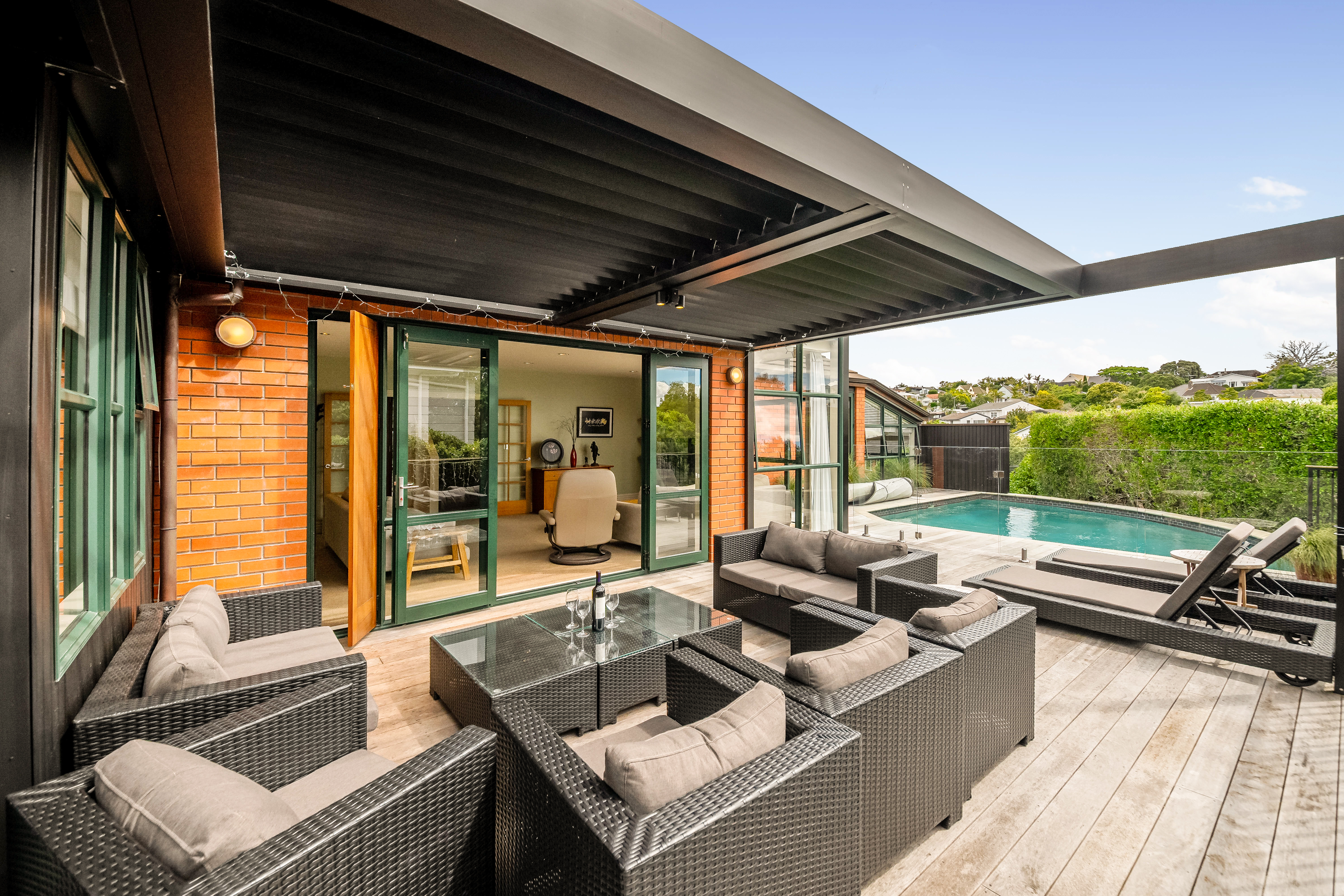 Architecturally designed by Allan Shanahan and constructed in enduring brick and tile, this substantial 340m2 home was built to last and adapt with your family over decades. Multiple living zones flow seamlessly to a fenced lawn on one side and a series of sheltered decks and a heated pool on the other, creating a true all-seasons lifestyle: summer swims, winter entertaining under cover, and safe, secure play for children and pets.